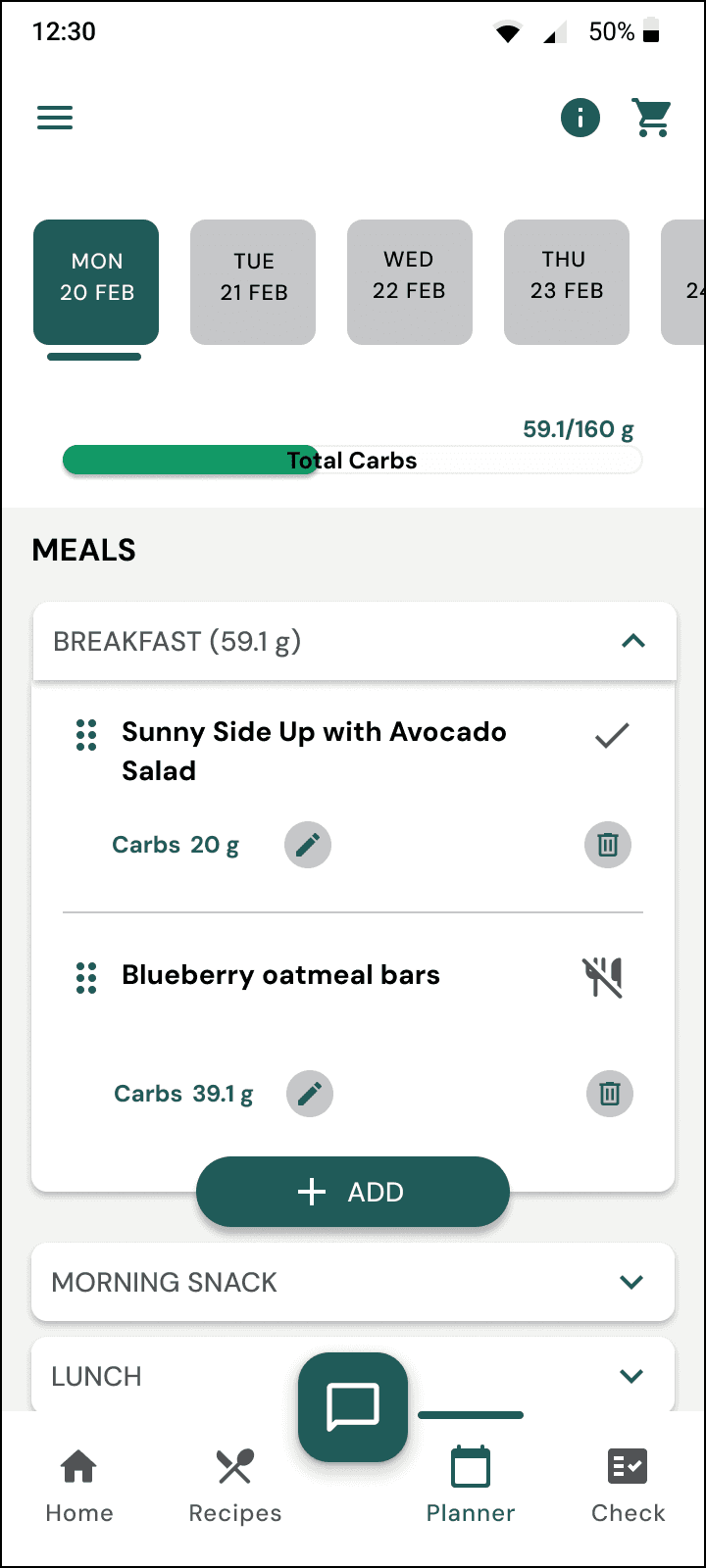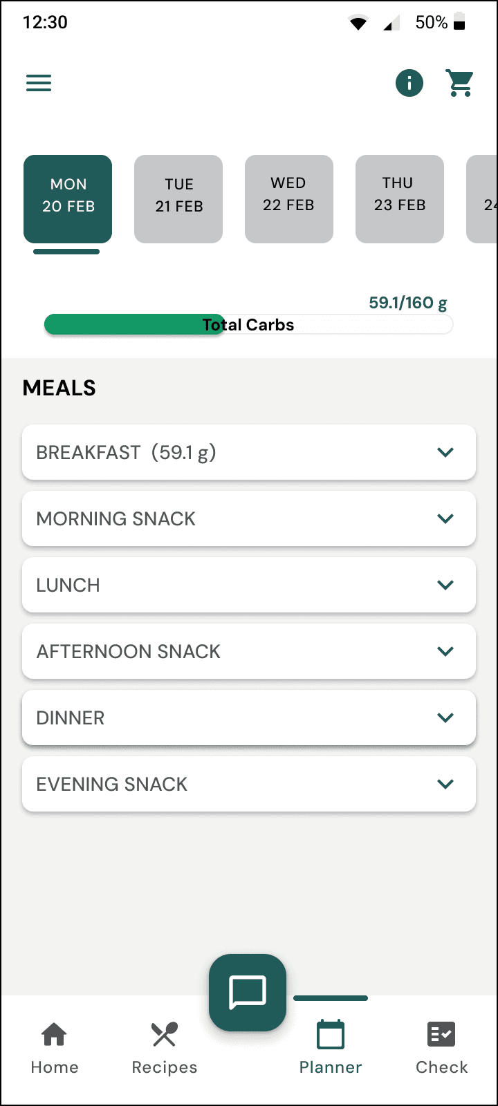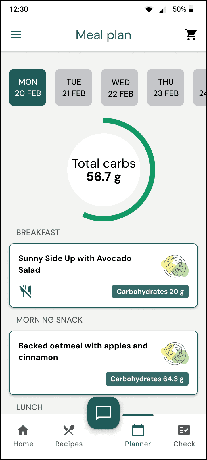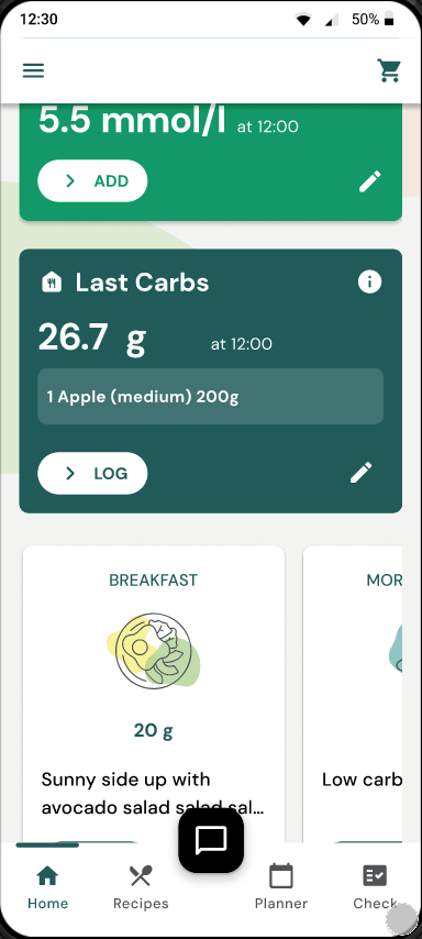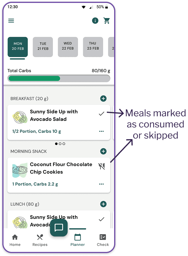 Carb Progress Indicator in Planner - Making carb management more accessible