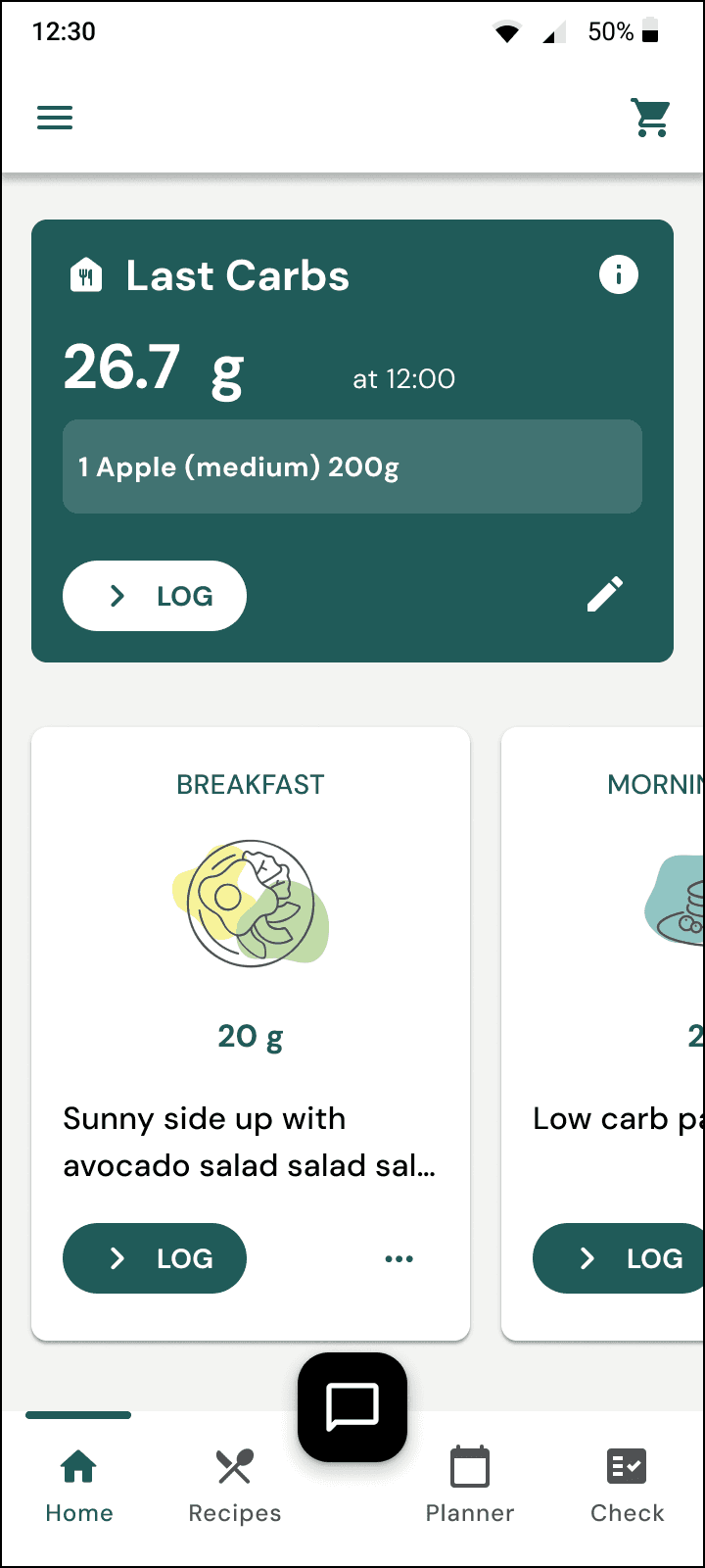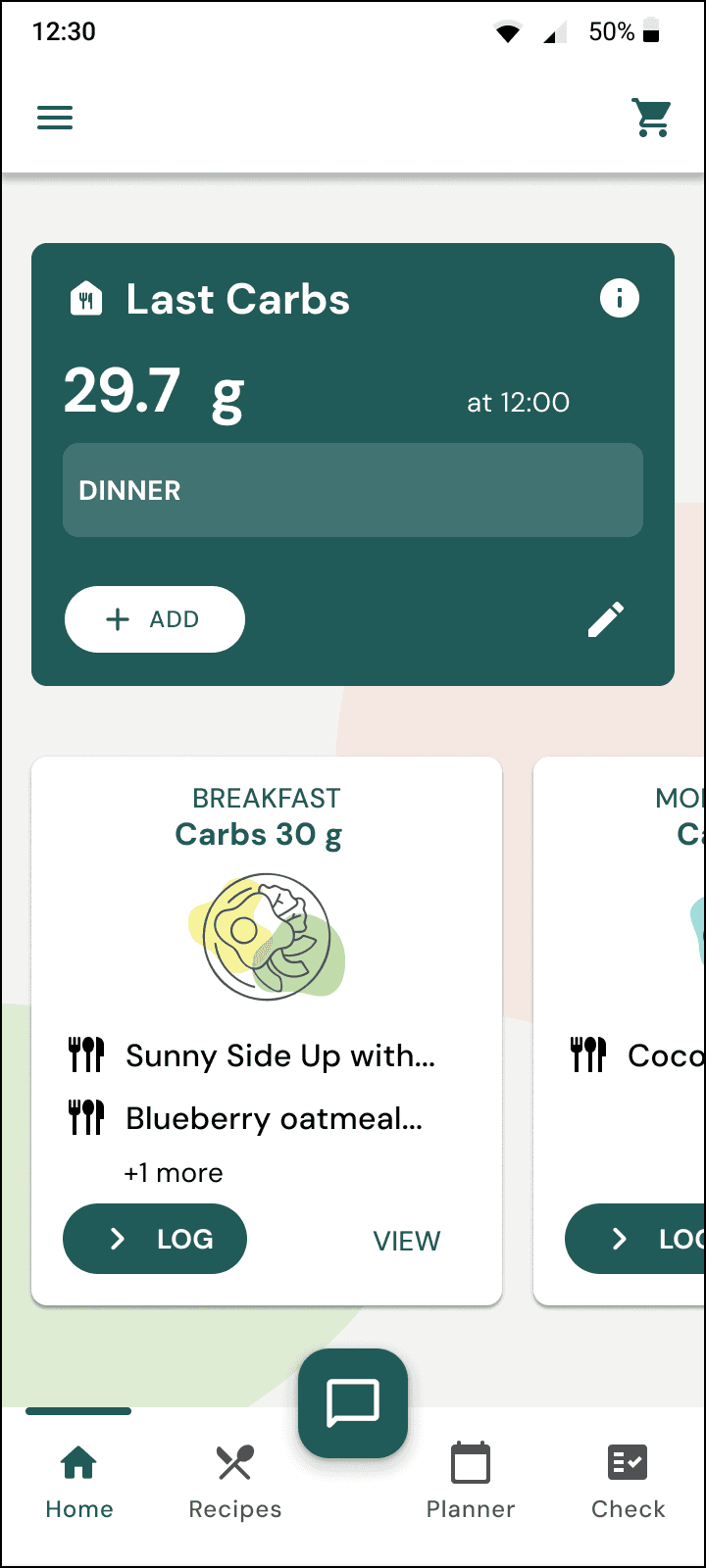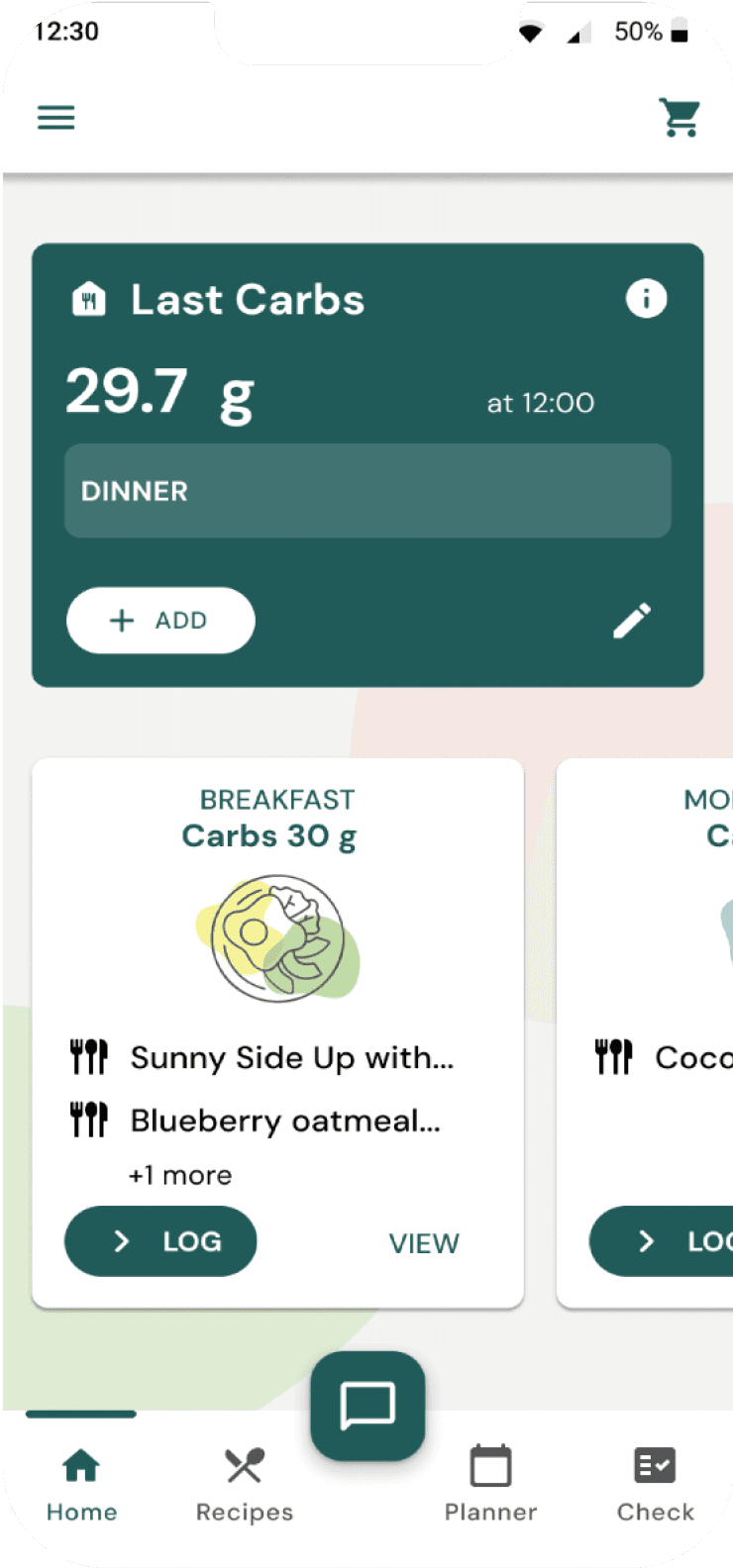 Carb Progress Indicator in Planner - Making carb management more accessible