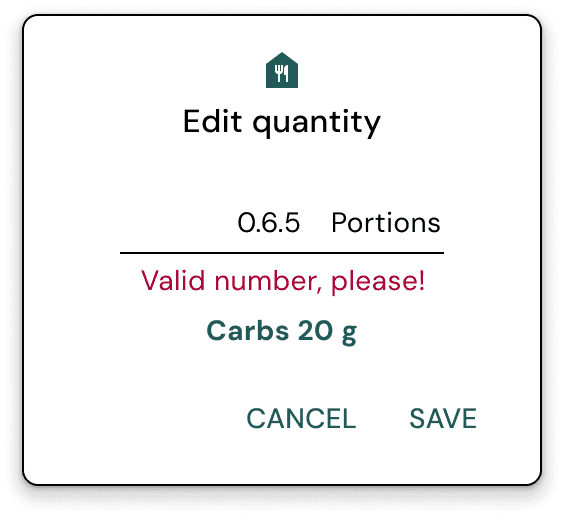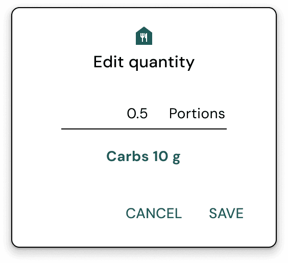 Users can now enter a portion size, and the app automatically calculates the carb value, reducing cognitive load.
