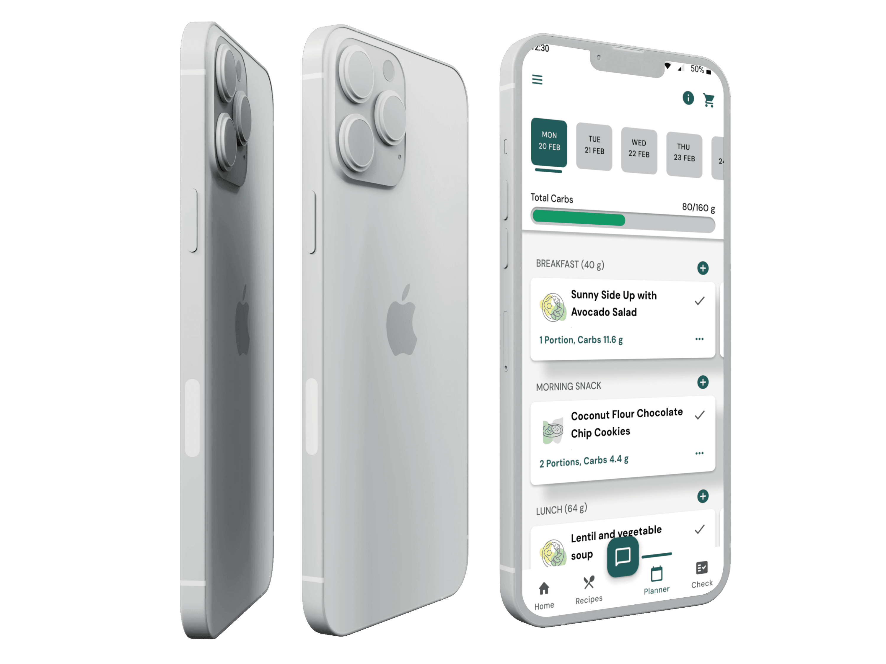 Realizing this, we replaced the ring progress indicator with a horizontal bar, reducing the required space while still ensuring users could easily track their carb intake and plan meals effectively.
