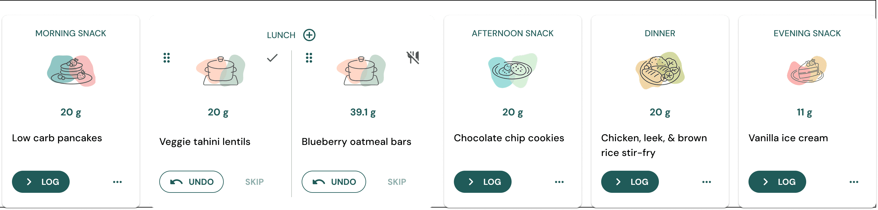 We initially tested an expandable accordion layout in which each of the six meals in a day contained meal courses listed one below the other when expanded.