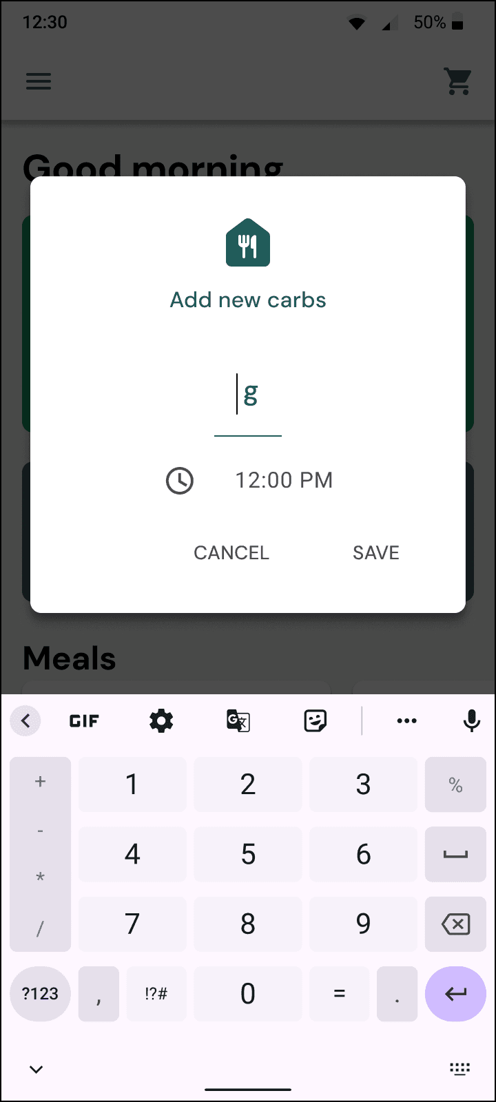 Before - Carb input dialog