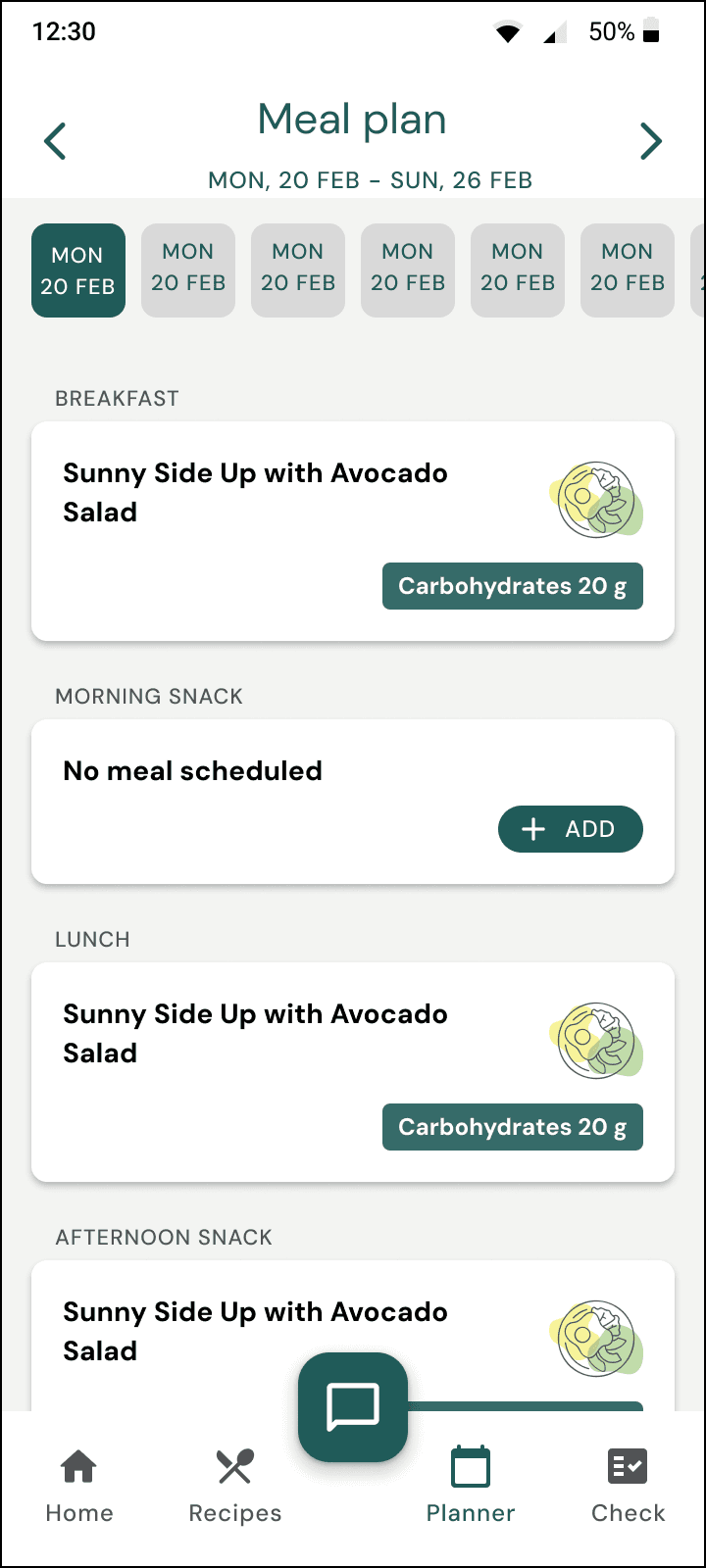 No meal status insights in the planner